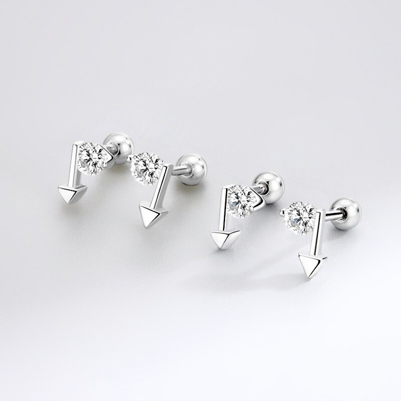 Sidabriniai helix auskarai Arrow tai stilingi papuošalai, kuriuose dera žėrintis cirkonio kristalas ir smaili strėlytės forma. Šis dizainas sukuria modernų įvaizdį, spinduliuojantį energija bei jaunatviškumu. Helix auskarai Arrow pagaminti iš tikro 925 prabos sidabro, kuris yra tvarus, ilgaamžis ir visuomet vertingas pasirinkimas. Patogus užsukamas užsegimas leidžia šiuos auskarus segėti tiek ausies pagalvėlėje, tiek kremzlėje, todėl šis aksesuaras tampa universaliu pasirinkimu įvairiam stiliui. Sidabriniai helix auskarai Arrow sveria 0.7 gramo, užsukamas burbuliukas 3mm skersmens, o strypelis – 6mm ilgio.