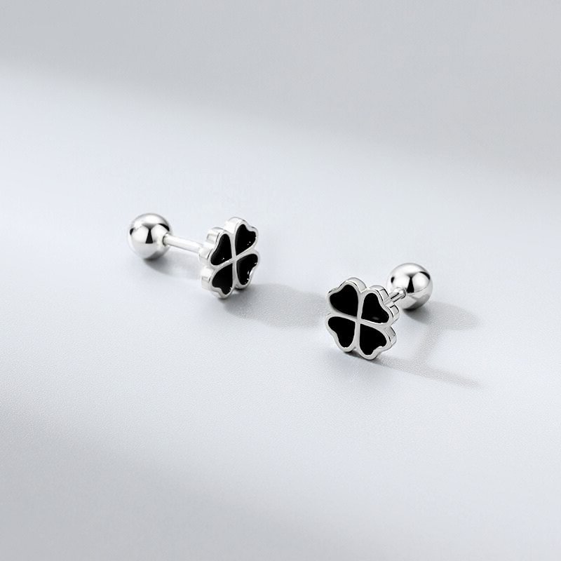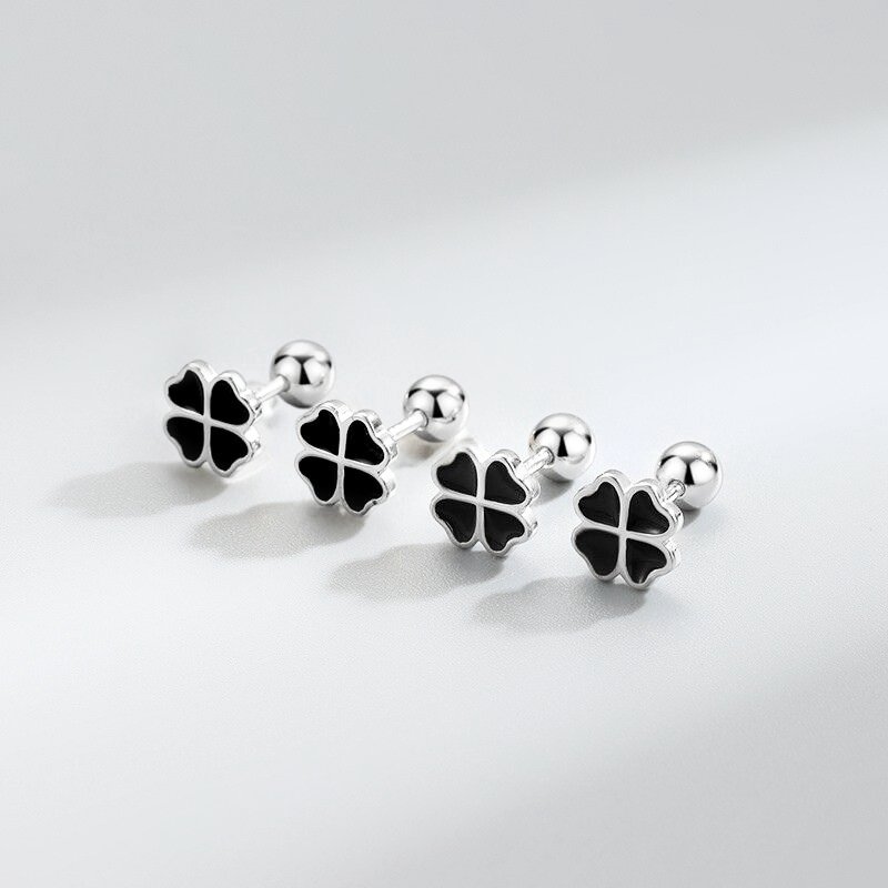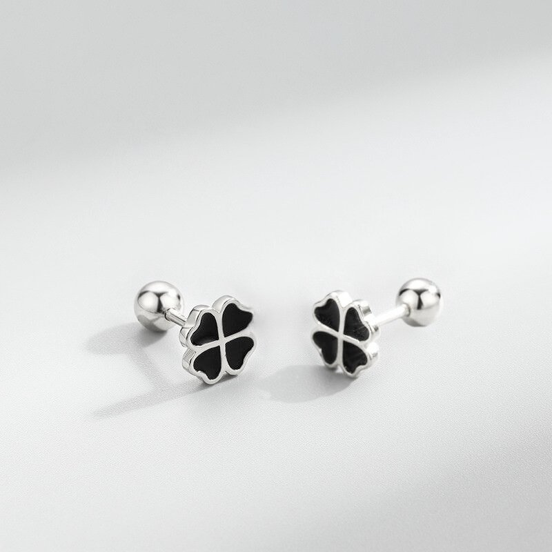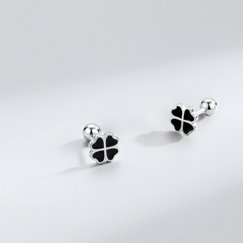 Sidabriniai helix auskarai Fortune tai išraiškingi papuošalai, dekoruoti keturlapio dobilo forma sudaryta iš širdelių. Juoda juvelyrinė emalė puikiai kontrastuoja su sidabro blizgesiu, suteikdama auskarams modernios elegancijos ir išskirtinumo. Helix auskarai Fortune pagaminti iš tikro 925 prabos sidabro, kuris yra tvarus, ilgaamžis ir visuomet vertingas pasirinkimas. Patogus užsukamas užsegimas leidžia juos segėti tiek ausies pagalvėlėje, tiek kremzlėje, todėl šie auskarai tampa universaliu akcentu kasdienai ar ypatingoms progoms. Sidabriniai helix auskarai Fortune sveria 1.5 gramo, gėlės skersmuo yra 7mm, užsukamas burbuliukas 4mm skersmens, o strypelis – 6mm ilgio.
