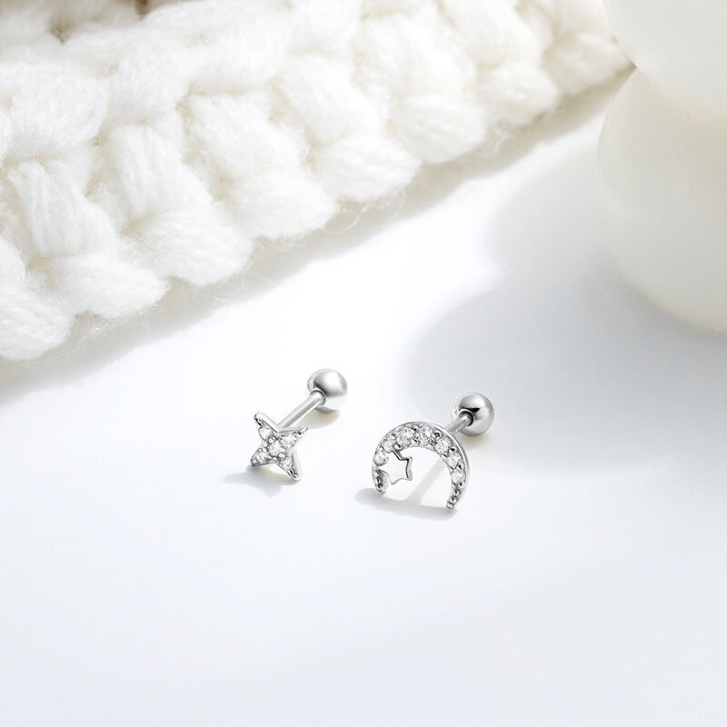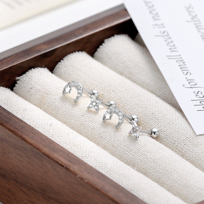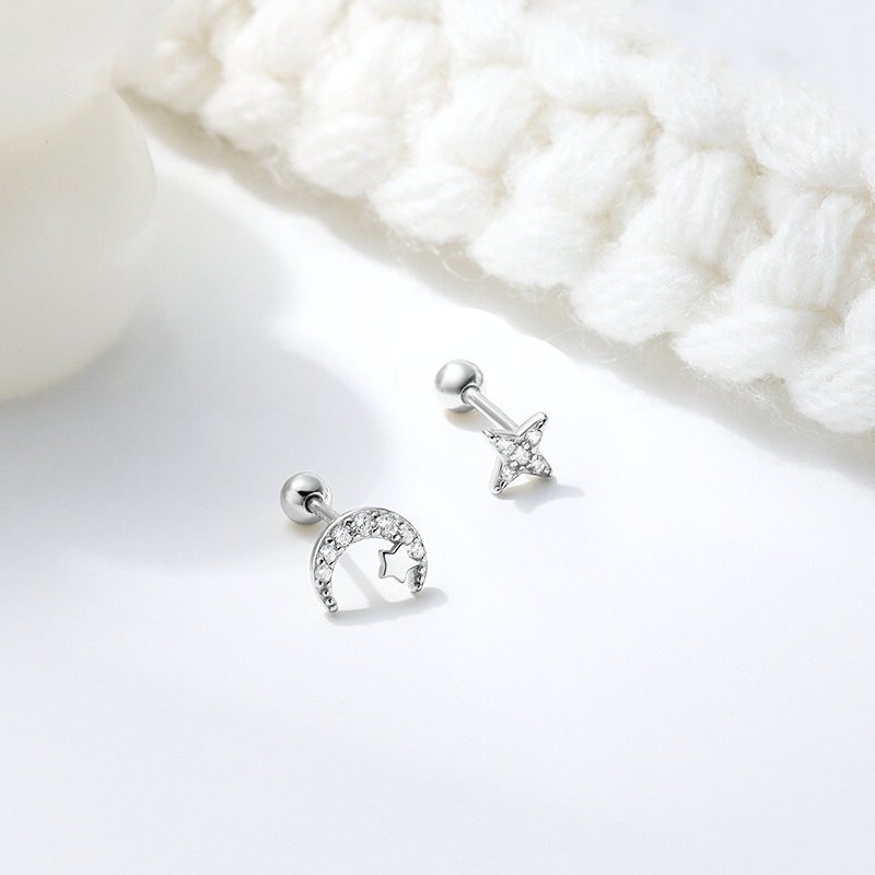 Sidabriniai helix auskarai Galaxy tai kosmoso grožio įkvėpti aksesuarai, dekoruoti žvaigždės ir pusmėnulio formomis, papuoštomis cirkonio kristalais. Blizgantys akmenukai primena dangaus šviesulius, suteikdami auskarams išskirtinio žavesio ir elegancijos. Helix auskarai Galaxy pagaminti iš tikro 925 prabos sidabro, kuris yra ilgaamžis, tvarus ir visuomet vertingas pasirinkimas. Patogus užsukamas užsegimas leidžia juos segėti tiek ausies pagalvėlėje, tiek kremzlėje, todėl jie tampa universaliu stiliaus akcentu įvairioms progoms. Sidabriniai helix auskarai Galaxy sveria 0.7 gramo, mėnulis yra 7mm, o žvaigždutė 4mm skersmens, užsukamas burbuliukas 3mm skersmens, o strypelis – 6mm ilgio.