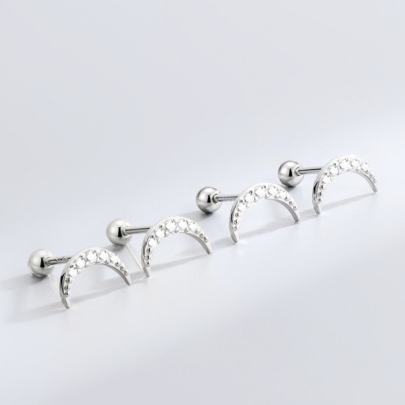 Sidabriniai helix auskarai Luna tai dangaus grožio įkvėpti aksesuarai, dekoruoti pusmėnulio forma ir žvilgančiais cirkonio kristalais. Spindintys akmenukai primena nakties dangaus žvaigždes, suteikdami auskarams subtilios elegancijos ir paslapties. Helix auskarai Luna pagaminti iš tikro 925 prabos sidabro, kuris yra ilgaamžis, tvarus ir visuomet vertingas pasirinkimas. Patogus užsukamas užsegimas leidžia juos segėti tiek ausies pagalvėlėje, tiek kremzlėje, todėl jie puikiai dera prie įvairių stilių ir progų. Sidabriniai helix auskarai Luna sveria 0.8 gramo, jų ilgis sieka 9mm, užsukamas burbuliukas 3mm skersmens, o strypelis – 6mm ilgio.