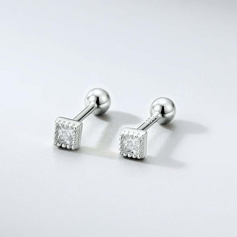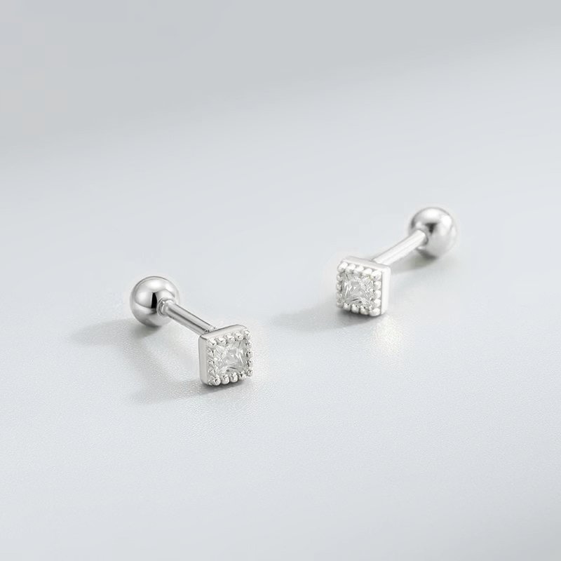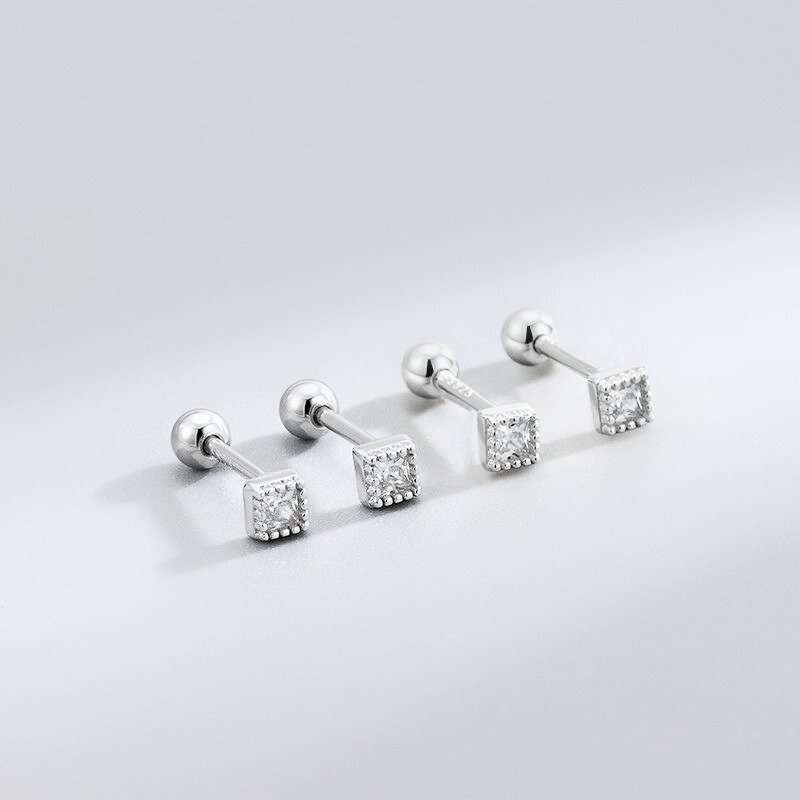 Sidabriniai helix auskarai Luxe Clear tai mažyčiai elegantiški aksesuarai, dekoruoti kvadrato formos skaidriu cirkonio kristalu. Skaidrus akmuo puikiai atspindi šviesą ir suteikia auskarams prabangos bei subtilaus spindesio. Helix auskarai Luxe Clear pagaminti iš tikro 925 prabos sidabro, kuris yra ilgaamžis, tvarus ir visuomet vertingas pasirinkimas. Patogus užsukamas užsegimas leidžia juos segėti tiek ausies pagalvėlėje, tiek kremzlėje, todėl jie tampa universaliu akcentu įvairioms progoms. Sidabriniai helix auskarai Luxe Clear sveria 0.6 gramo, kvadratuko skersmuo yra 3mm, užsukamas burbuliukas taip pat 3mm skersmens, o strypelis – 6mm ilgio.