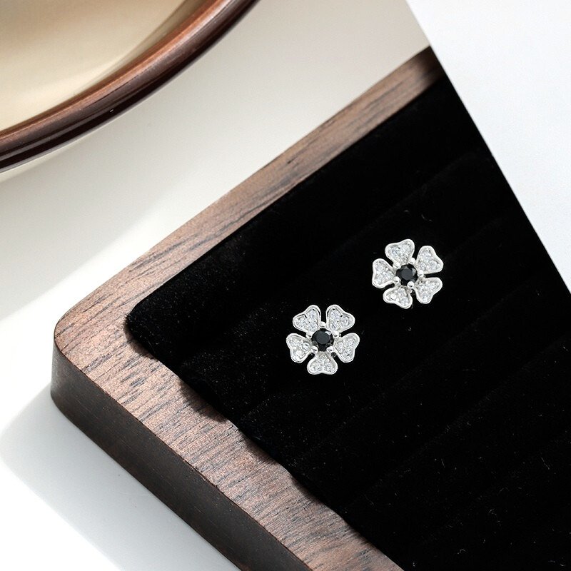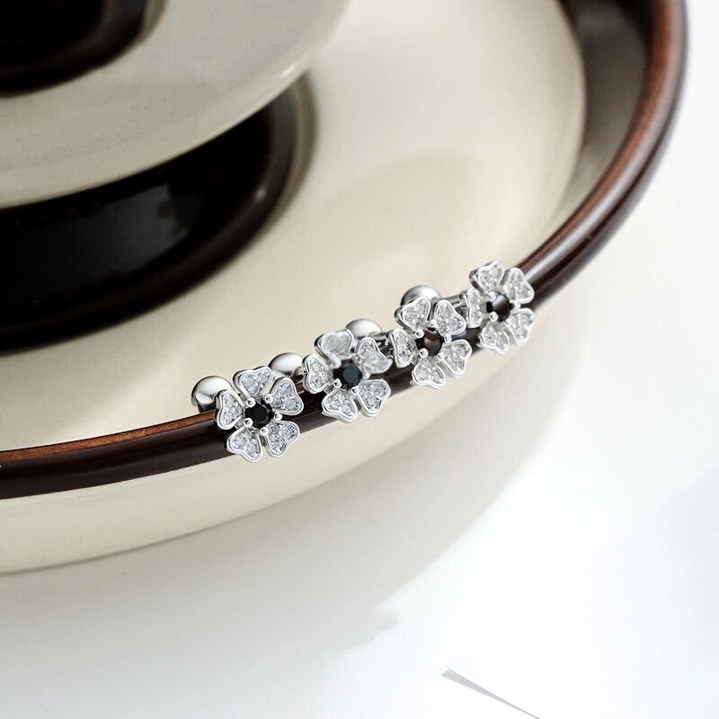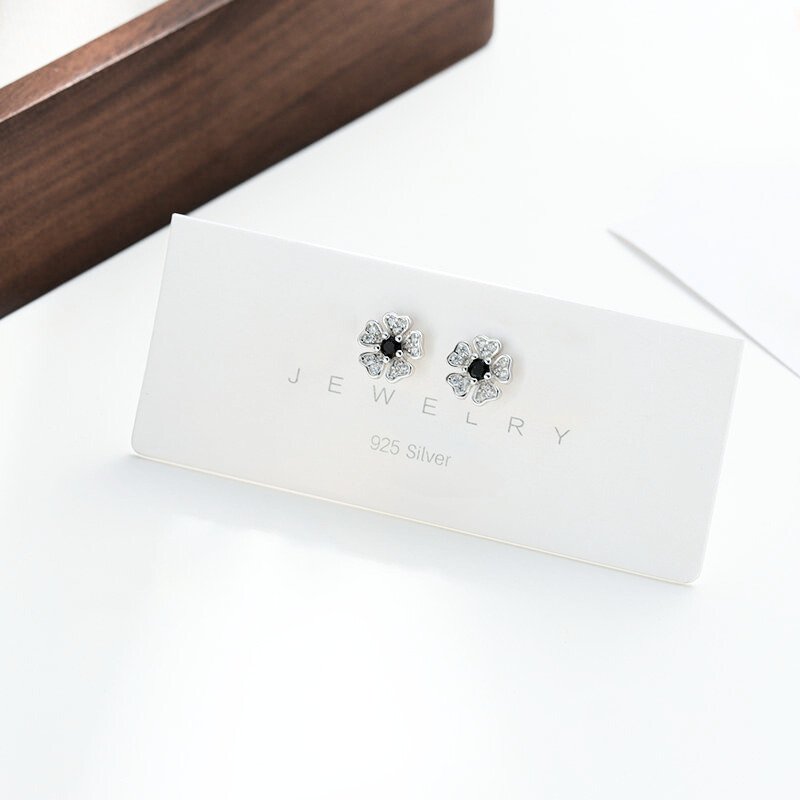 Sidabriniai helix auskarai Orchid tai elegantiški aksesuarai, sukurti gėlės formos dizainu su juodu kristalu centre ir žėrinčiais cirkoniais žiedlapiuose. Baltos ir juodos spalvos kristalų kontrastas suteikia auskarams ypatingo rafinuotumo ir modernios elegancijos. Helix auskarai Orchid pagaminti iš tikro 925 prabos sidabro, kuris yra tvarus, ilgaamžis ir visuomet vertingas pasirinkimas. Patogus užsukamas užsegimas leidžia juos segėti tiek ausies pagalvėlėje, tiek kremzlėje, todėl šis aksesuaras tampa universaliu akcentu įvairioms progoms. Sidabriniai helix auskarai Orchid sveria 1.7 gramo, gėlytės skersmuo yra 8mm, užsukamas burbuliukas 4mm skersmens, o strypelis – 6mm ilgio.