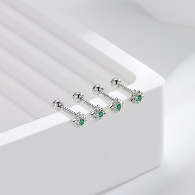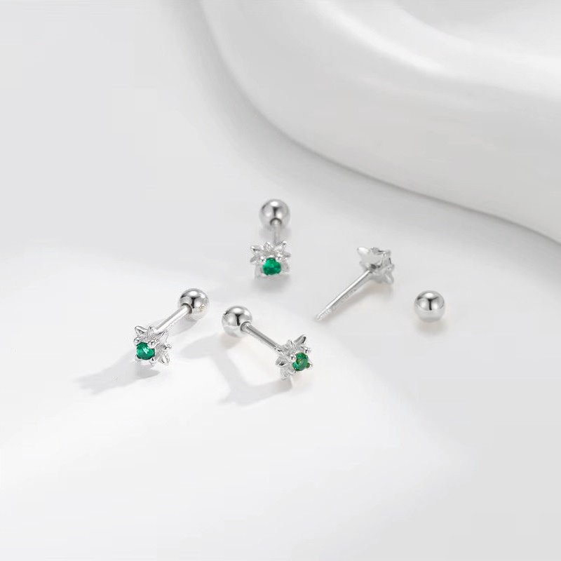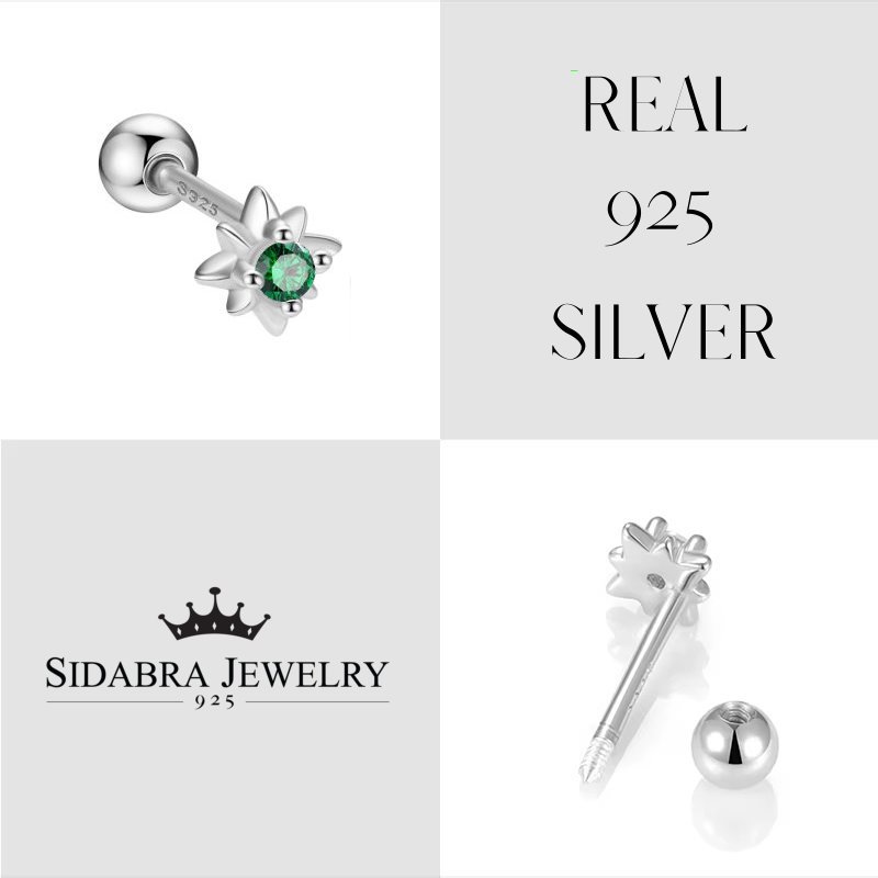 Sidabriniai helix auskarai Sola Green tai elegantiški aksesuarai, dekoruoti žvaigždutės formos žaliu cirkonio kristalu. Gilus žalias akmuo simbolizuoja gamtos harmoniją ir suteikia auskarams išskirtinės elegancijos bei gaivumo. Helix auskarai Sola Green pagaminti iš tikro 925 prabos sidabro, kuris yra ilgaamžis, tvarus ir visuomet vertingas pasirinkimas. Patogus užsukamas užsegimas leidžia juos segėti tiek ausies pagalvėlėje, tiek kremzlėje, todėl jie tampa universaliu akcentu įvairioms progoms. Sidabriniai helix auskarai Sola Green sveria 0.7 gramo, žvaigždutės skersmuo yra 5mm, užsukamas burbuliukas 3mm skersmens, o strypelis – 6mm ilgio.