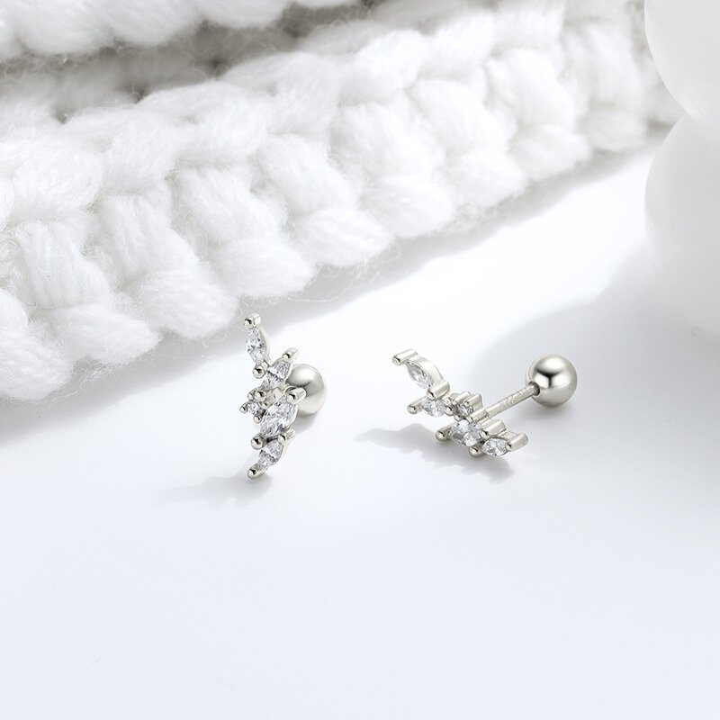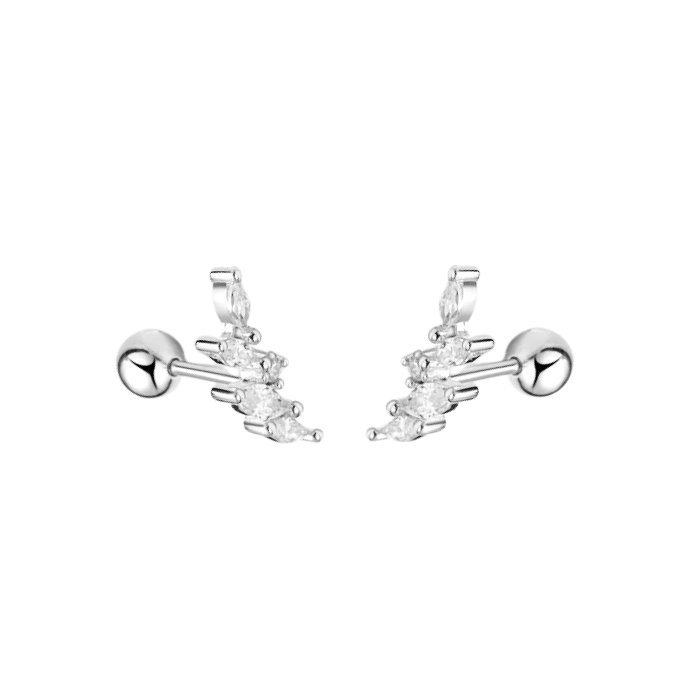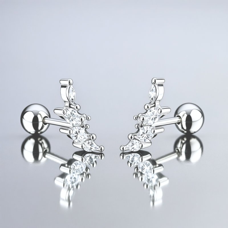 Sidabriniai helix auskarai Stark tai modernūs ir išraiškingi papuošalai, inkrustuoti skaidriais cirkonio kristalais. Klasikinė linija ir kruopščiai išdėstyti akmenukai suteikia subtilaus spindesio bei elegancijos. Helix auskarai Stark pagaminti iš tikro 925 prabos sidabro, kuris yra tvarus, ilgaamžis ir visuomet vertingas pasirinkimas. Patogus užsukamas užsegimas ir universalus dizainas leidžia šiuos auskarus segėti tiek ausies pagalvėlėje, tiek kremzlėje, todėl jie puikiai tinka įvairiems stiliams. Sidabriniai helix auskarai Stark sveria 1.6 gramo, kristalų dalies ilgis sieka 13mm, plotis 5mm, užsukamas burbuliukas 4mm skersmens, o strypelis – 6mm ilgio.