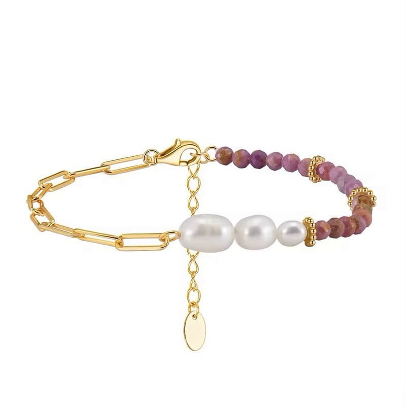 Stilinga kojos grandinėlė Purple Mica pagaminta iš tikro 925 prabos sidabro ir padengta geltonu auksu. Papuoškite savo kojas išskirtine grandinėle, kuri sudaryta iš natūralių muskavito akmenų, turinčių švelnų violetinį atspalvį ir gėlavandenių perlų. Perlai simbolizuoja išmintį ir moterišką grožį, bei suteikia elegancijos, o muskovito kristalai padeda nusiraminti ir surasti vidinį sielos balansą. Kojos grandinėlė Purple Mica puikiai tinka ir prie paplūdimio aprangos ir pasipuošti įvairiems renginiams ar šventėms, nes įvaizdį papildo išskirtiniais atspalvių deriniais. Ji ne tik papuoš Jūsų kojas, tačiau ir įprasms išvykas prie jūros ar ežero, kur galėsite jaustis išskirtinai ir žavingai. Paauksuota kojos grandinėlė Purple Mica sveria 4.5 gramo, o jos ilgis reguliuojasi nuo 23 iki 28 centimetrų.