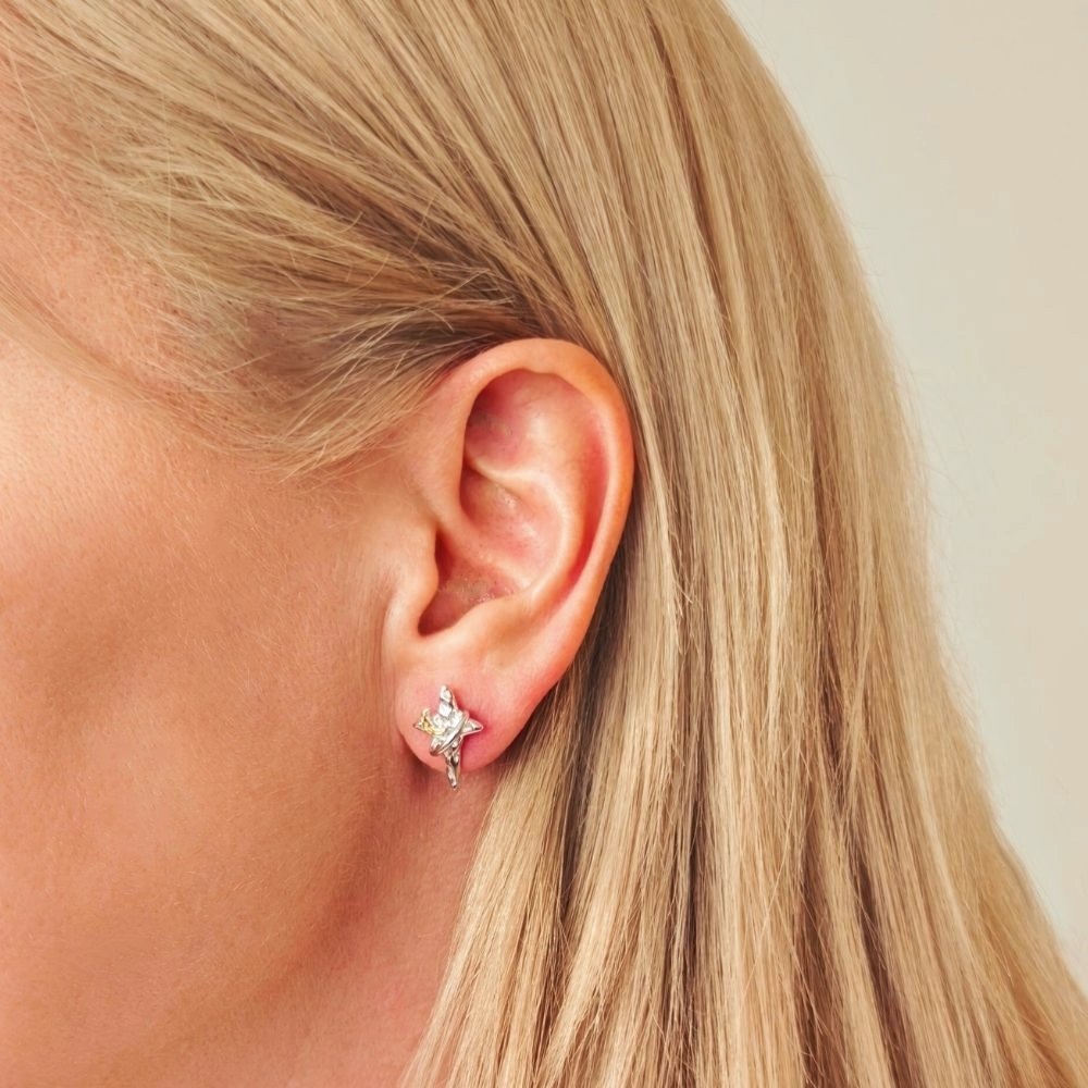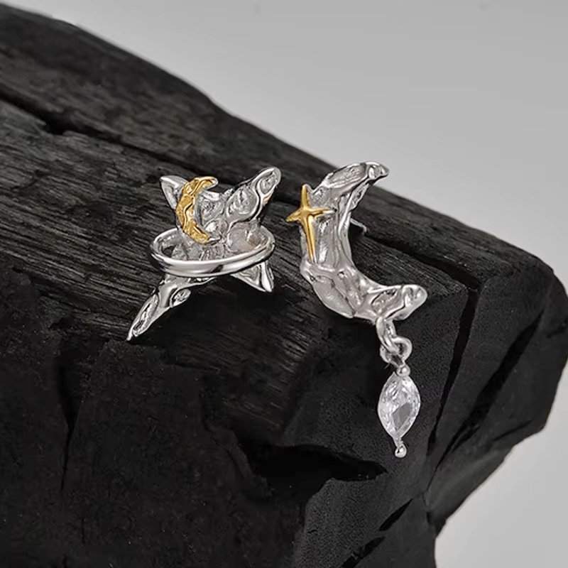 Sidabriniai auskarai Celia įkvėpti dangaus motyvų ir sukurti derinant mėnulio bei žvaigždės simbolius. Paauksuotos detalės subtiliai kontrastuoja su sidabru ir išryškina dizaino detales. Auskarai Celia pagaminti iš tikro 925 prabos sidabro, vertinamo dėl ilgaamžiškumo, kokybės bei tvarumo. Šis aksesuaras skirtas moteriai, kuri mėgsta išskirtinius papuošalus ir nori išraiškingo akcento kasdieniam ar proginiam įvaizdžiui. Skirtingi auskarai Celia yra skirtingų dydžių, kryželis 14mm aukščio ir 10mm pločio, mėnulis 22mm aukščio ir 8mm pločio, o bendras jų svoris 2.6 gramo.