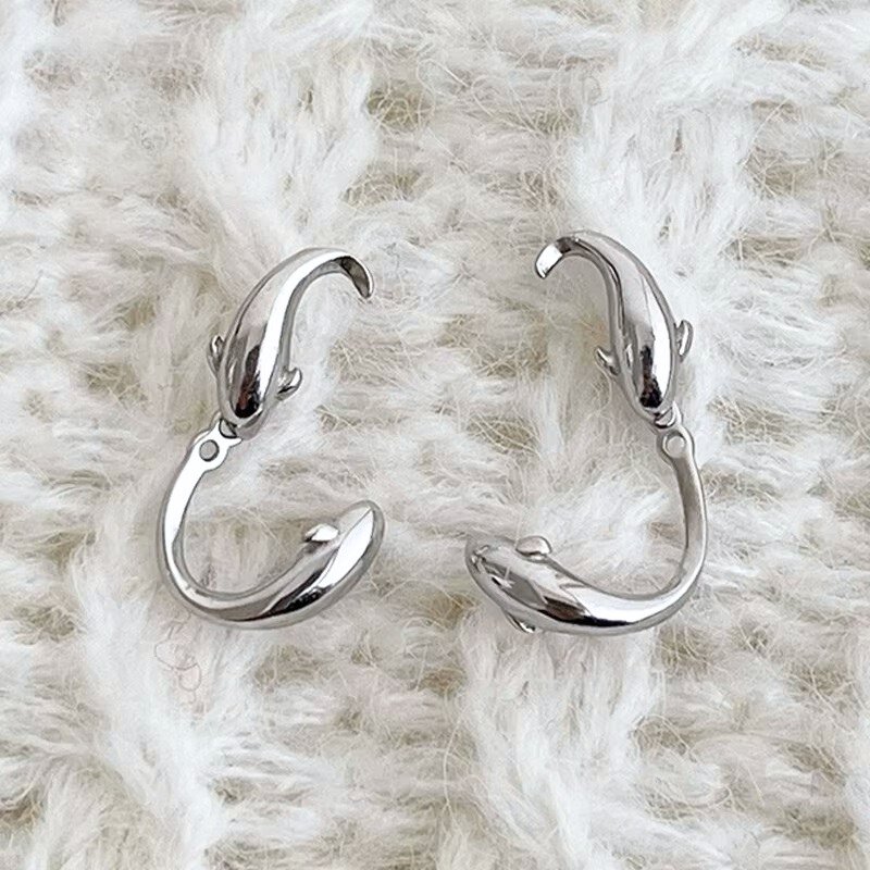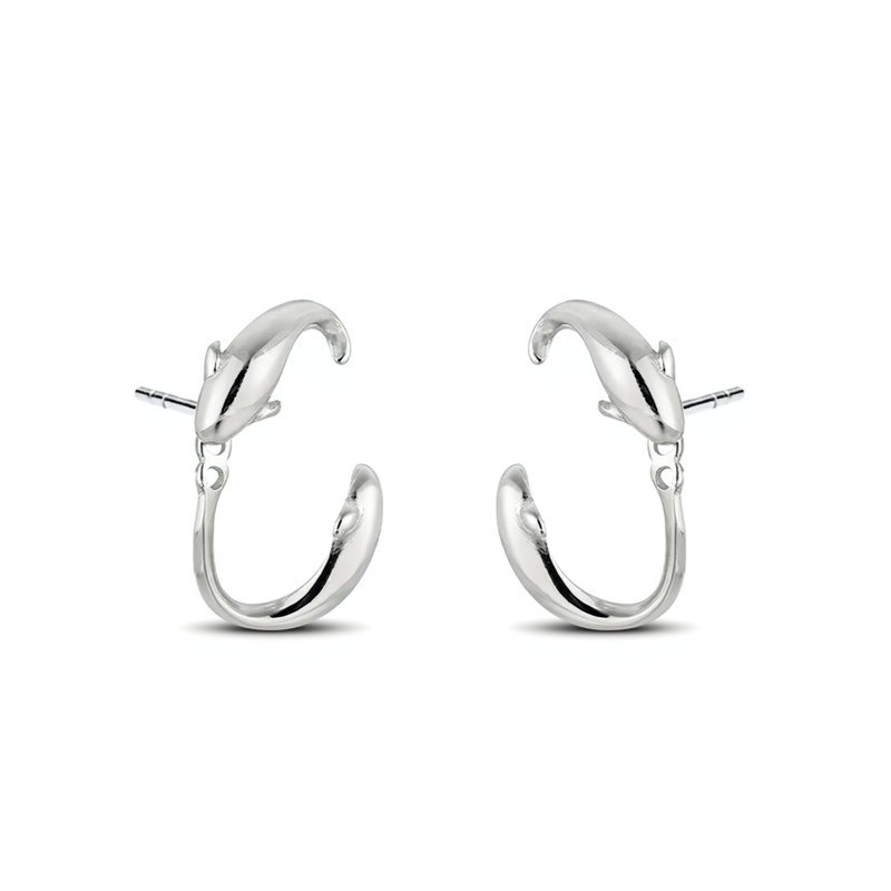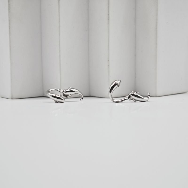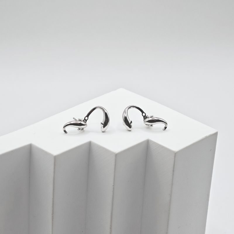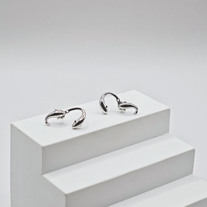 Sidabriniai auskarai Dolphin tai jūros įkvėpti papuošalai, simbolizuojantys delfinų grakštumą ir išmonę. Išlenkta forma ir subtilios detalės suteikia auskarams judesio bei gyvybingumo pojūtį. Auskarai Dolphin pagaminti iš tikro 925 prabos sidabro, kuris yra tvarus, ilgaamžis ir visuomet vertingas pasirinkimas. Šie papuošalai puikiai papildys tiek kasdienį įvaizdį, tiek vasariškus derinius, patiks moterims, mėgstančioms gamtos ir jūros motyvus. Sidabriniai auskarai Dolphin yra 18mm aukščio ir 11mm pločio, bei sveria 1.8 gramo.