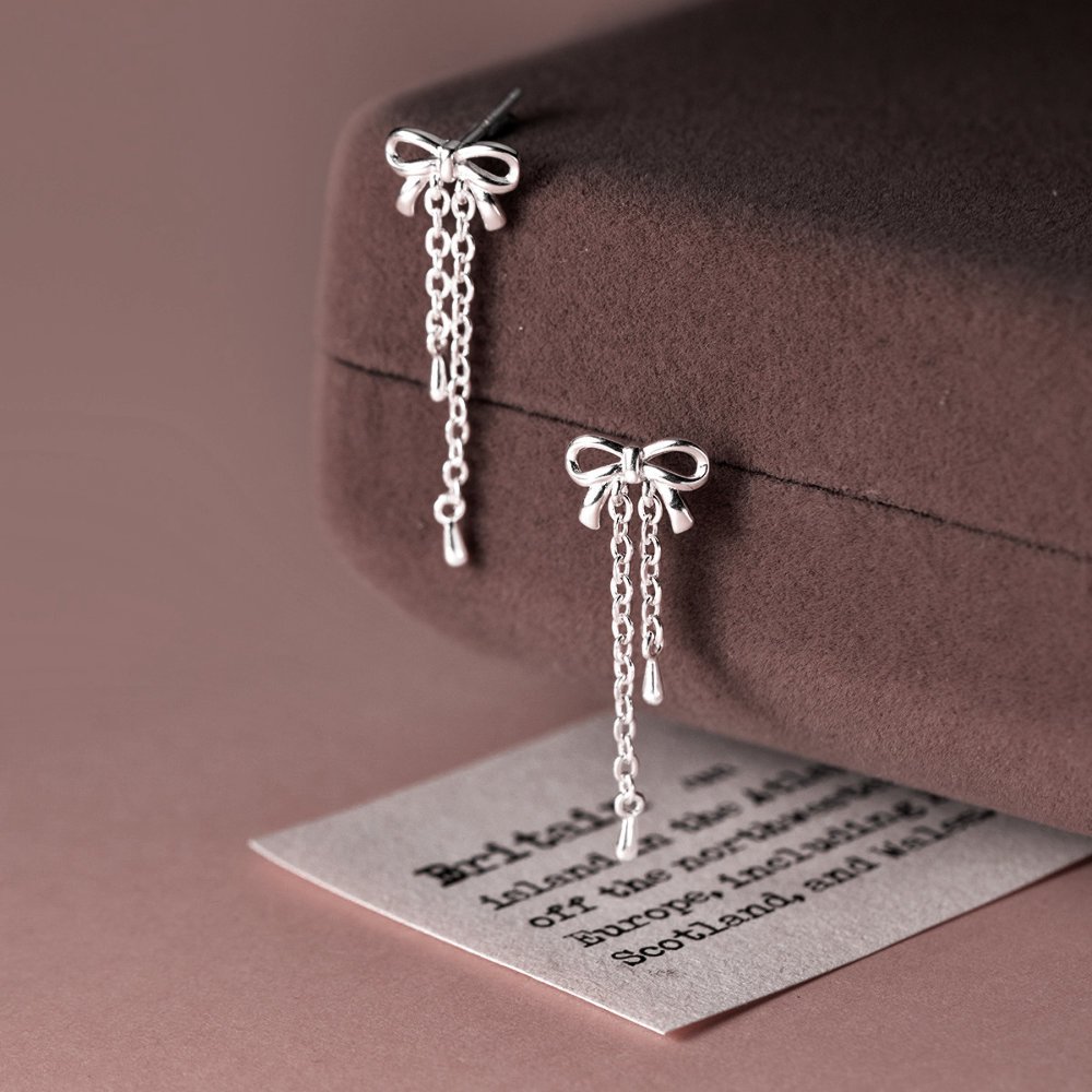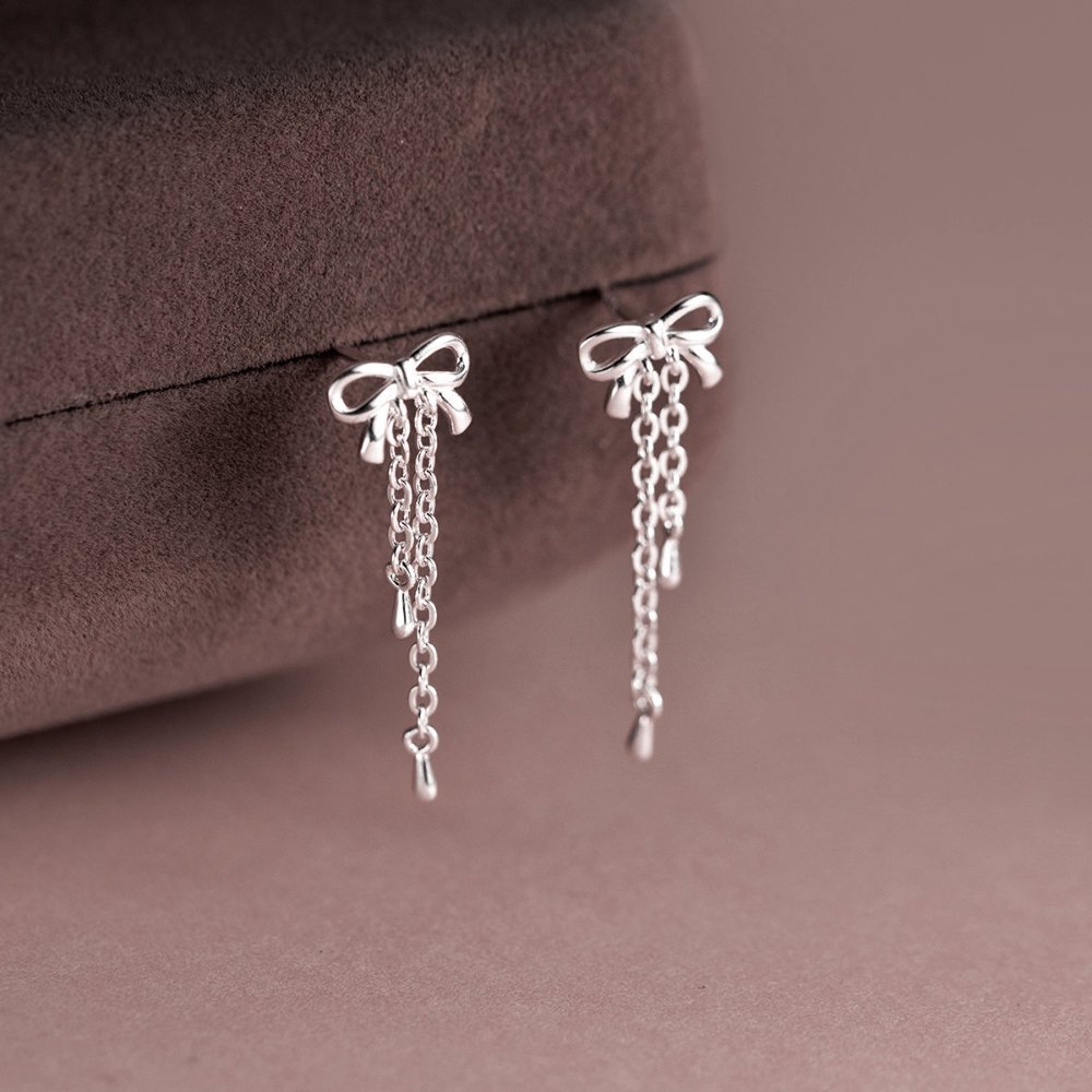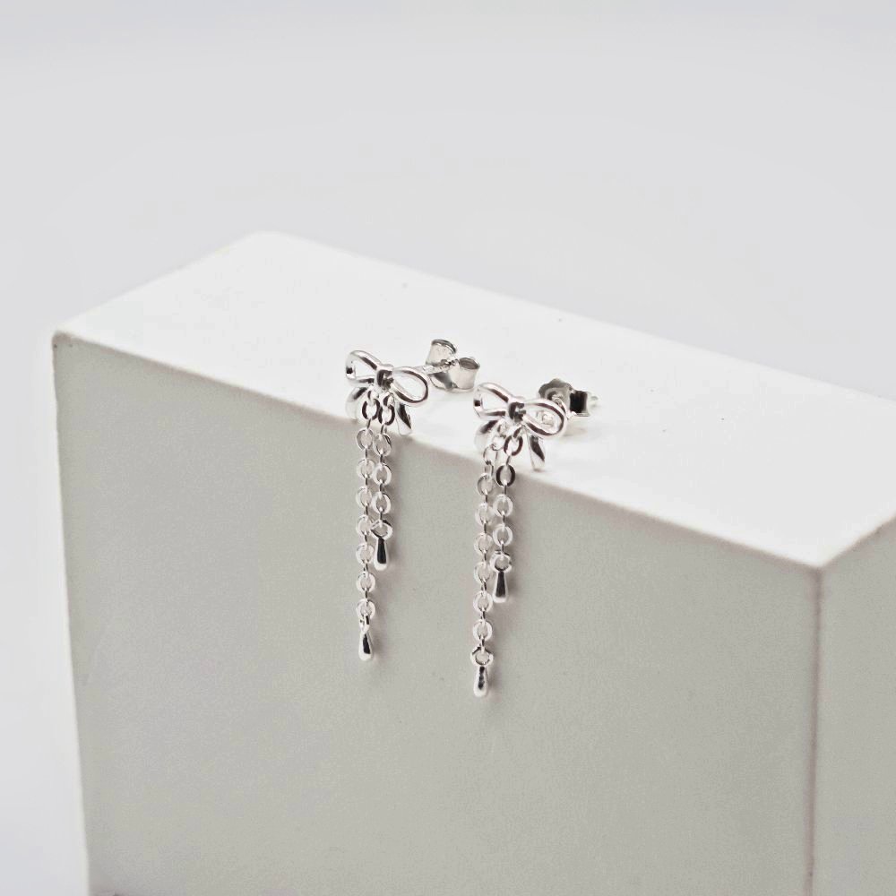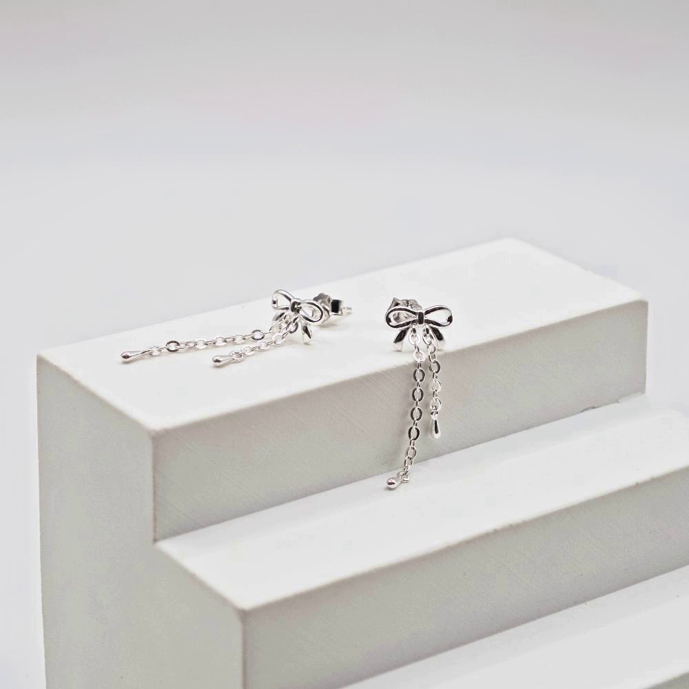 Sidabriniai auskarai Lora sukurti pagal kaspino motyvą, kuris suteikia papuošalui švelnumo ir moteriškumo. Plonos kabančios grandinėlės papildo dizainą ir sukuria lengvo judesio pojūtį. Auskarai Lora pagaminti iš tikro 925 prabos sidabro, vertinamo dėl ilgaamžiškumo, kokybės bei tvarumo. Šis aksesuaras skirtas moteriai, kuri renkasi subtilius, lengvus papuošalus ir nori švelnaus akcento kasdieniam ar romantiškesniam įvaizdžiui. Šviesaus sidabro auskarai Lora yra 28mm aukščio ir 8mm pločio bei sveria 1.1 gramo.