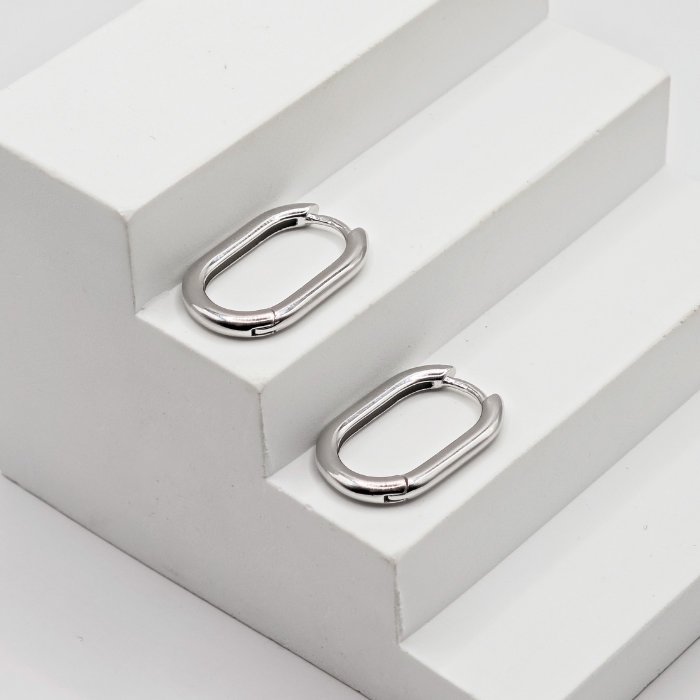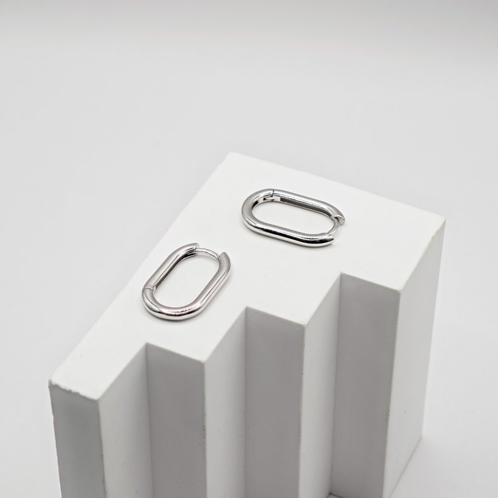 Sidabriniai auskarai Outline pasižymi pailga, suapvalintų kampų forma, kuri pabrėžia aiškias ir taisyklingas linijas. Poliruotas ir blizgus paviršius suteikia žavesio bei papildo papuošalą charakteriu, išryškina minimalizmo pojūtį. Auskarai Outline pagaminti iš tikro 925 prabos sidabro, kuris vertinamas dėl savo ilgaamžiškumo, kokybės bei tvarumo. Šis aksesuaras skirtas moteriai, kuri renkasi švarius, minimalistinius papuošalus ir vertina aiškų, laikui nepavaldų dizainą. Sidabriniai auskarai Outline yra 25mm aukščio, 15mm pločio ir 2.5mm storio bei sveria 4.4 gramo.