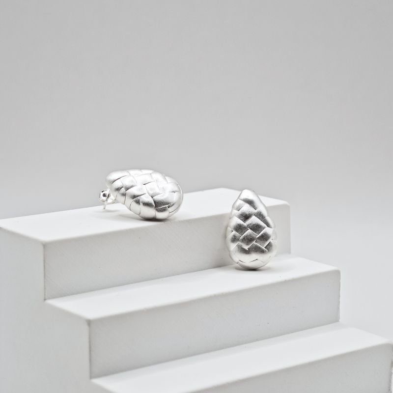 Sidabriniai auskarai Pine primena švelniai supintą gamtos raštą, kuris įamžintas konkorėžio formoje. Unikali šviesaus sidabro tekstūra sukuria išskirtinį žaismą, kai jame atsispindi šviesos ar saulės spinduliai. Auskarai Pine pagaminti iš tikro 925 prabos sidabro – tai ilgaamžis, tvarus ir stilingas pasirinkimas. Šie aksesuarai lengvai dera prie klasikinės aprangos ar šiuolaikinio miesto stiliaus, suteikdamas rafinuotumo ir elegancijos. Šviesaus sidabro auskarai Pine yra 22mm aukščio ir 14mm pločio, bei sveria 4.1 gramo.