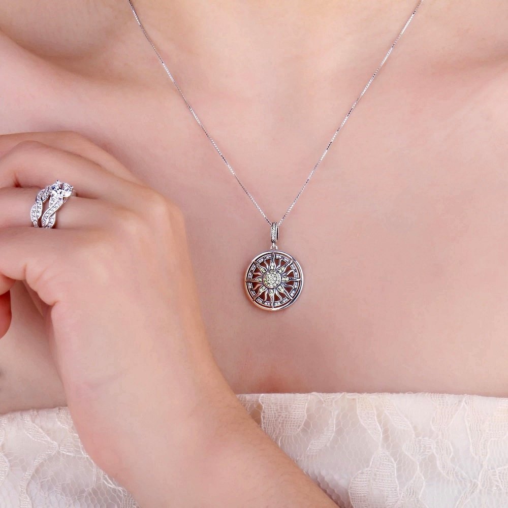 Sidabrinis pakabukas Saulė tobulai papildys Jūsų susikurtą įvaizdį. Unikalaus dizaino pakabukas yra tarsi saulės spindulių paleistas šviesos pliūpsnis. Apvali forma simbolizuoja gyvybę ir šilumą, o blizgantys baltos ir gelsvos spalvos cirkonio kristalai suteikia prabangos bei elegancijos. Jeigu ieškote modernaus kaklo papuošalo, kuris turėtų ir apsauginę amuleto funkciją, pakabukas Saulė – puikus pasirinkimas. Saulė – tai vienas svarbiausių gamtos objektų simbolizuojantis laimę, šviesą ir gėrį. Papuošalai su šiuo simboliu yra labai vertinami, nes tikima, kad saugo žmogų nuo blogio ir negandų. Pakabukas Saulė yra parduodamas be grandinėlės ir sveria 2.6 gramo yra 20mm skersmens.