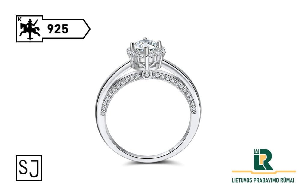Sidabras yra padengtas platinos grupės metalu – Rodžiu, kuris ne tik apsaugo nuo nusidėvėjimo ir oksidacijos procesų, tačiau ir suteikia ypatingo spindesio ir blizgesio, todėl mūsų parduodami papuošalai vizualiai, savo išvaizda, niekuo nesiskiria nuo balto aukso papuošalų. Mes garantuojame, kad šis žiedas yra pagamintas iš tikro 925 prabos sidabro. Juvelyrinio gaminio lydinyje gryno sidabro yra ne mažiau kaip 92.5%.
