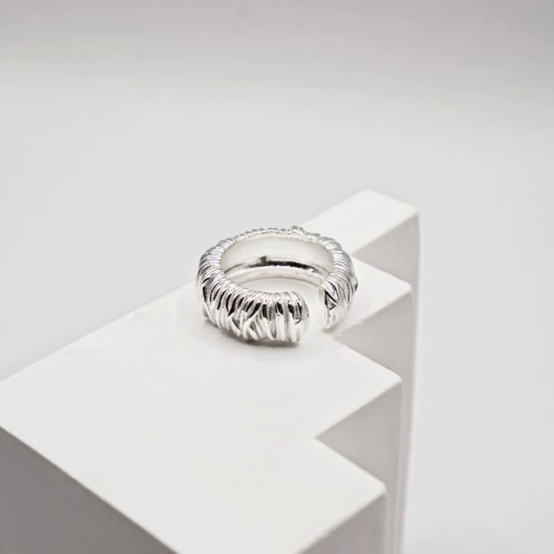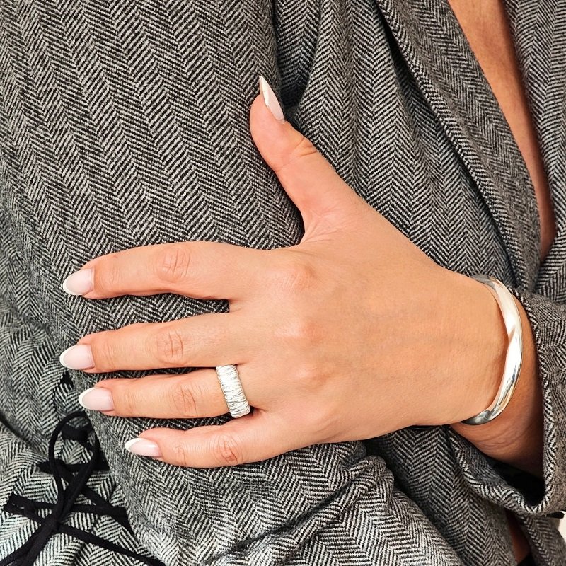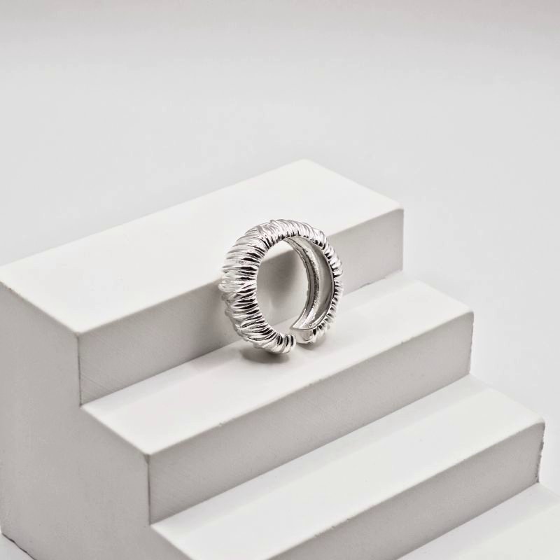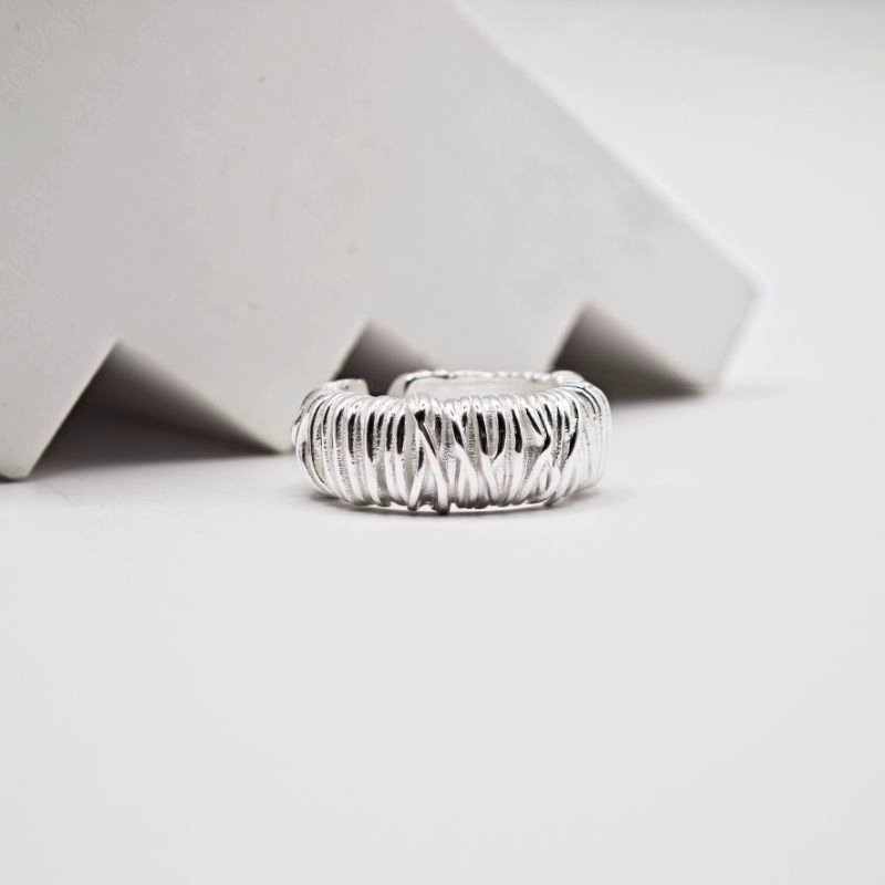 Sidabrinis žiedas Elora tai išraiškingas ir šiuolaikiškas papuošalas, išsiskiriantis dinamiška reljefine tekstūra. Kruopščiai išgraviruotos linijos ant žiedo paviršiaus sukuria žaismingą šviesos ir šešėlių harmoniją. Modernus žiedas Elora pagamintas iš tikro 925 prabos sidabro, kuris yra tvarus, ilgaamžis ir visuomet išliekantis vertingas pasirinkimas. Šis aksesuaras puikiai dera prie minimalistinių kasdienių derinių ir suteikia ypatingo charakterio elegantiškiems vakaro įvaizdžiams. Sidabrinis žiedas Elora sveria 6.9 gramo, o dydis reguliuojasi pagal piršto apimtį, todėl puikiai tiks nešiojančioms 16-18 dydžius. Esminis tokio žiedo privalumas, kad priklausomai nuo nuotaikos, aprangos ar įvaizdžio, galite rinktis ant kurio piršto jį norite dėvėti.