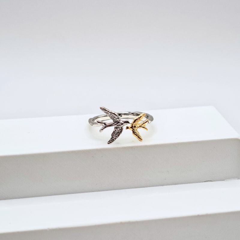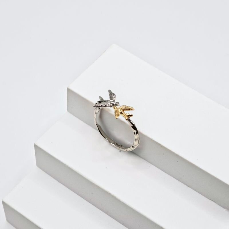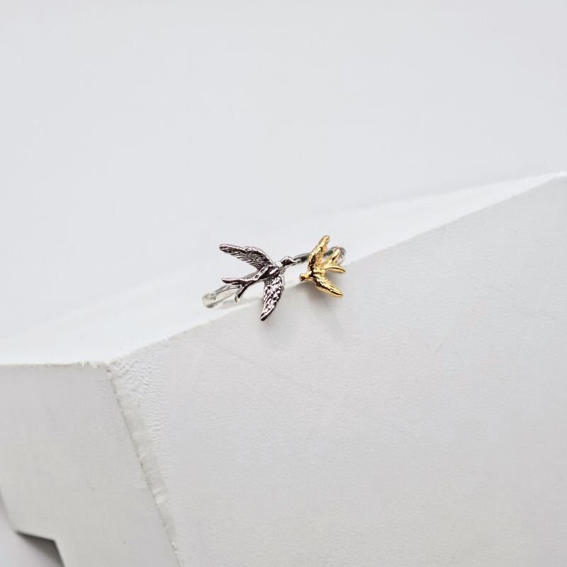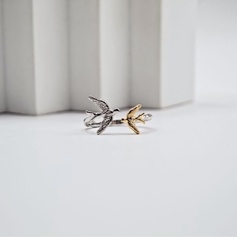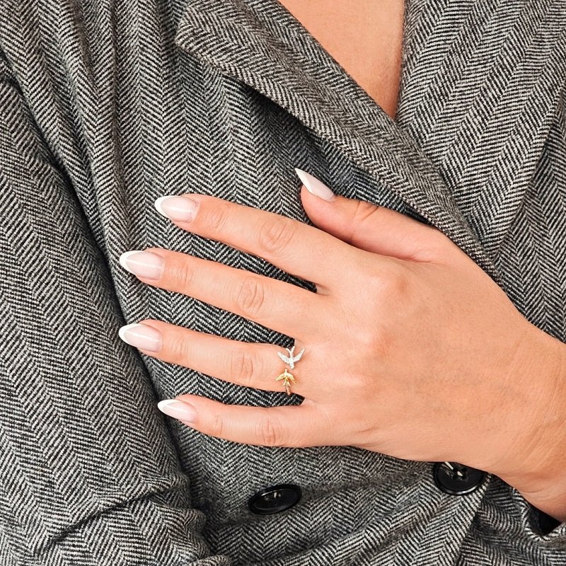 Sidabrinis žiedas Freedom tai išraiškingas papuošalas, simbolizuojantis laisvę, dvasingumą ir vidinę harmoniją. Dvi paukščio figūros – viena sidabrinė, kita padengta auksu – sukuria kontrastingą, bet tuo pačiu ir darnų įvaizdį. Įspūdingas žiedas Freedom pagamintas iš tikro 925 prabos sidabro, kuris yra tvarus, ilgaamžis ir visuomet išliekantis vertingas pasirinkimas. Šis aksesuaras puikiai dera tiek prie kasdienių, tiek prie ypatingų progų įvaizdžių, suteikdamas moteriai išskirtinumo bei elegancijos. Sidabrinis žiedas Freedom sveria 2.3 gramo, o dydis reguliuojasi pagal piršto apimtį, todėl puikiai tiks nešiojančioms 16-18 dydžius. Esminis tokio žiedo privalumas, kad priklausomai nuo nuotaikos, aprangos ar įvaizdžio, galite rinktis ant kurio piršto jį norite dėvėti.
