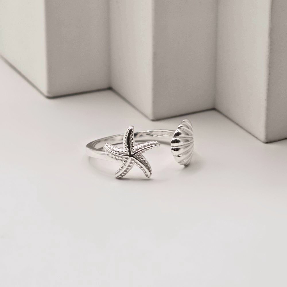 Sidabrinis žiedas Sealine įkvėptas jūros motyvų, kurie perteikia lengvą, vasarišką nuotaiką. Kriauklės ir jūrų žvaigždės detalės suteikia papuošalui žaismingumo bei subtilios simbolikos. Sidabrinis žiedas Sealine pagamintas iš tikro 925 prabos sidabro, vertinamo dėl ilgaamžiškumo, kokybės ir tvarumo. Šis aksesuaras skirtas moteriai, kuri ieško lengvai derinamo akcento kasdieniam ar atostogų įvaizdžiui. Sidabrinis žiedas Sealine sveria 2.1 gramo, o dydis reguliuojasi pagal piršto apimtį, todėl puikiai tiks nešiojančioms 16-18 dydžius. Esminis tokio žiedo privalumas, kad priklausomai nuo nuotaikos, aprangos ar įvaizdžio, galite rinktis ant kurio piršto jį norite dėvėti.