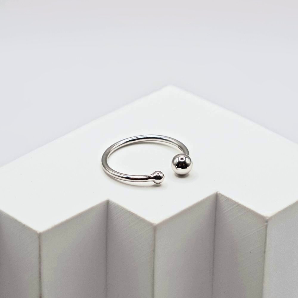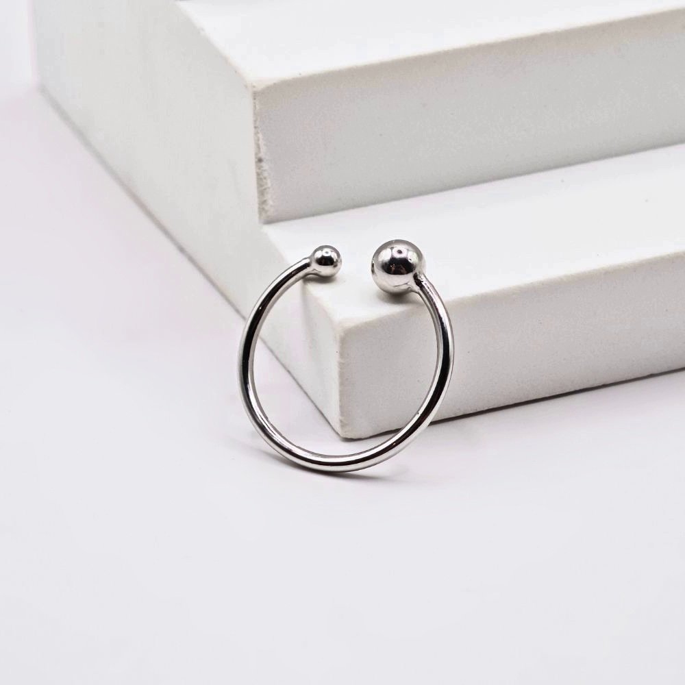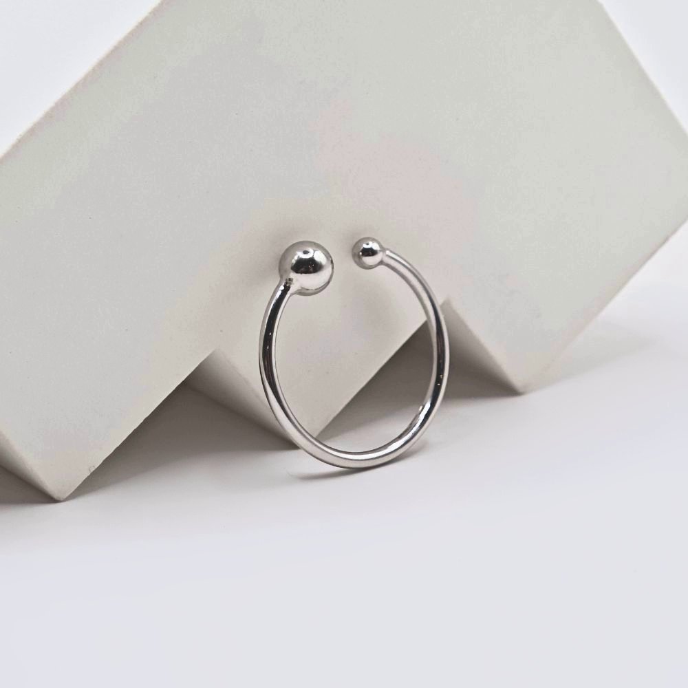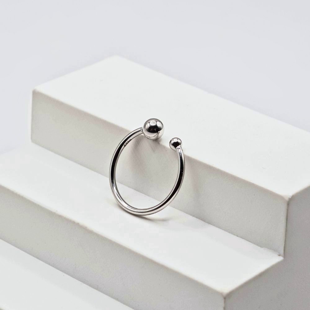 Sidabrinis žiedas Still pasižymi švariu, atviru dizainu, kuriame susitinka du skirtingo dydžio bumbuliukai. Aiškios linijos ir taisyklinga žiedo forma sukuria aiškų, vizualiai tvarkingą moters įvaizdį. Sidabrinis žiedas Still pagamintas iš tikro 925 prabos sidabro, vertinamo dėl ilgaamžiškumo, kokybės ir tvarumo. Šis aksesuaras skirtas moteriai, kuri renkasi minimalistinius papuošalus ir vertina tylų, subalansuotą stilių kasdienai. Sidabrinis žiedas Still sveria 1.2 gramo, o dydis reguliuojasi pagal piršto apimtį, todėl puikiai tiks nešiojančioms 16-18 dydžius. Esminis tokio žiedo privalumas, kad priklausomai nuo nuotaikos, aprangos ar įvaizdžio, galite rinktis ant kurio piršto jį norite dėvėti.