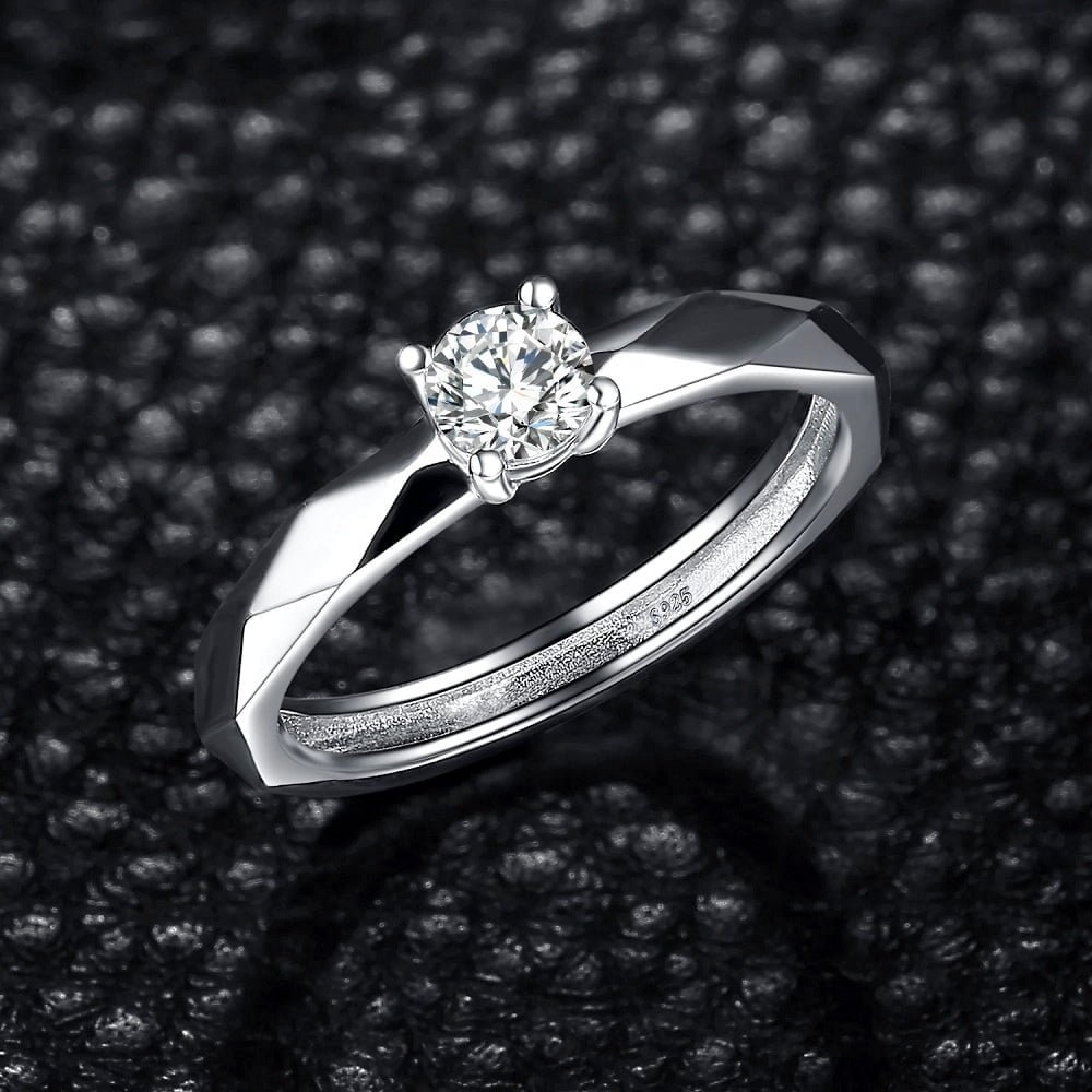 Sidabrinis 925 prabos žiedas sužadėtuvių proga. Papuoštas 5mm skersmens balto cirkonio kristalu, kuris apdirbtas naujausia Diamond Cut technologija ir puikiai dera su briaunuotu žiedelio paviršiumi. Baltas cirkonis atspindinti deimanto prabangą ir žavesį bei papildo įvaizdį žėrinčiomis detalėmis. Žiedas sužadėtuvių proga sveria 1.8 gramo ir atrodo labai prabangiai bei elegantiškai. Tik įsivaizduokite, kaip nuostabiai jis derės prie Jūsų vakarinio stiliaus įvaizdžio, o tas žėrintis cirkonio spindesys ir lūžinėjantys spinduliai vakaro šviesose…
